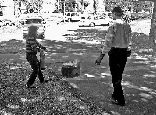 Fahrenheit 451 opens with firemen responding to a call. The Randolph-Macon College kickoff event began with the Ashland Fire Department providing hands-on training and practice in using a fire extinguisher. Free copies of the novel, buttons, bookmarks, and snacks attracted participants from all segments of the Randolph- Macon community: faculty, staff, and students. Young noted that due to the heavy reading demands on students during the semester, extracurricular reading is not widely embraced; the hands-on activity offered a welcomed change of pace for the students. Young was encouraged by the enthusiasm with which the Randolph-Macon community received free copies of Fahrenheit 451 .